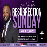 We are honored to announce that Pastor Elect Breon A. Williams has been selected as the Pastor Elect of Fountain of Faith Missionary Baptist Church. This milestone marks a new chapter in our church’s journey, and we look forward to the leadership, guidance, and spiritual growth Pastor Elect Williams will bring to our congregation and community. Please join us in praying for Pastor Elect Williams and his family, the Fountain of Faith family, and all who are touched by this ministry.April 5, 2026, 10:30 am Pastor Elect Breon A. Williams will bring forth the word on Resurrection Sunday. |